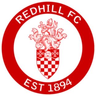 Redhill F.C. logo featuring a red and white crest with a lion on top and the year 1894 at the bottom.